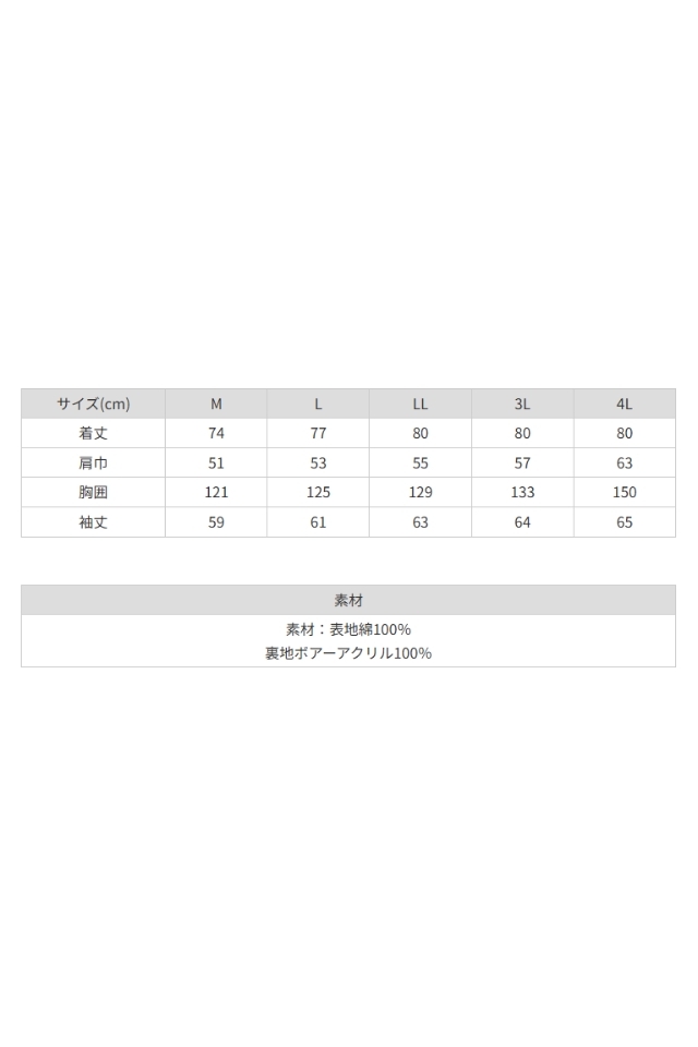 橘被服の綿100%防寒コート厚手ボアー仕様3012