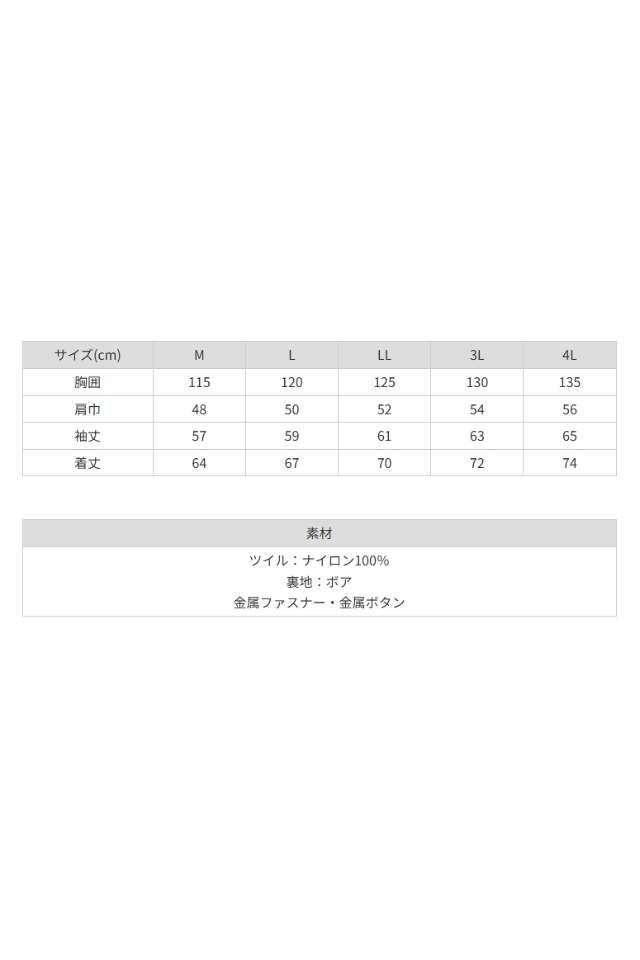 【BIGサイズ】ASAHICHO上質の撥水ナイロン裏ボア 高級防寒カストロコート4005