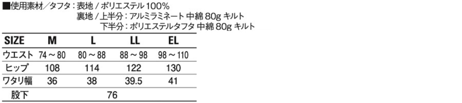 アイトス光電子繊維の中綿で自然な暖かを保つ防寒着AZ-6062パンツ