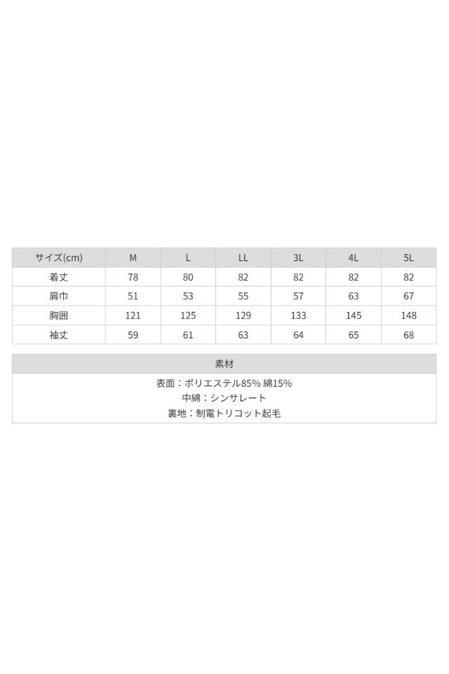 | 表面:ポリエステル85% 綿15% 中綿:シンサレート 裏地:制電トリコット起毛 |