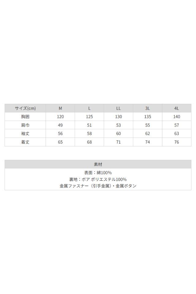 橘被服の綿100%防寒コート厚手ボアー仕様3012