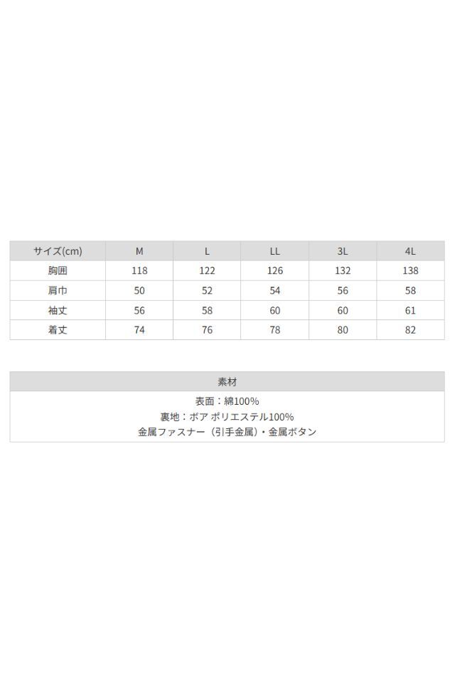 橘被服の綿100%防寒コート厚手ボアー仕様3012