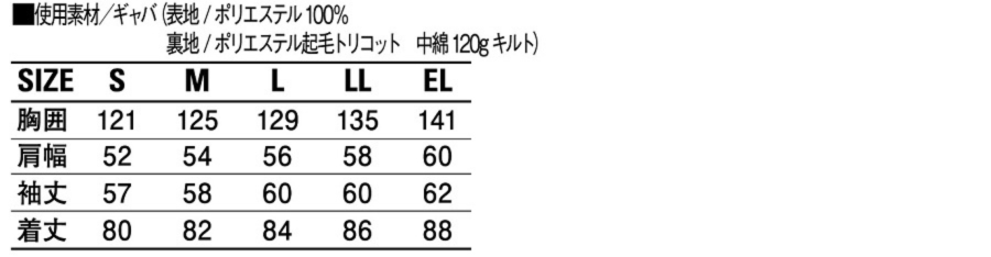 中綿がたっぷり入って保温力の優れた作業用防寒ブルゾンE76000