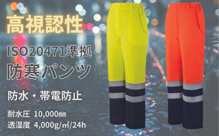 道路工事など作業にISO20471 JIS8127高視認防水帯電防止防寒着48471パンツ