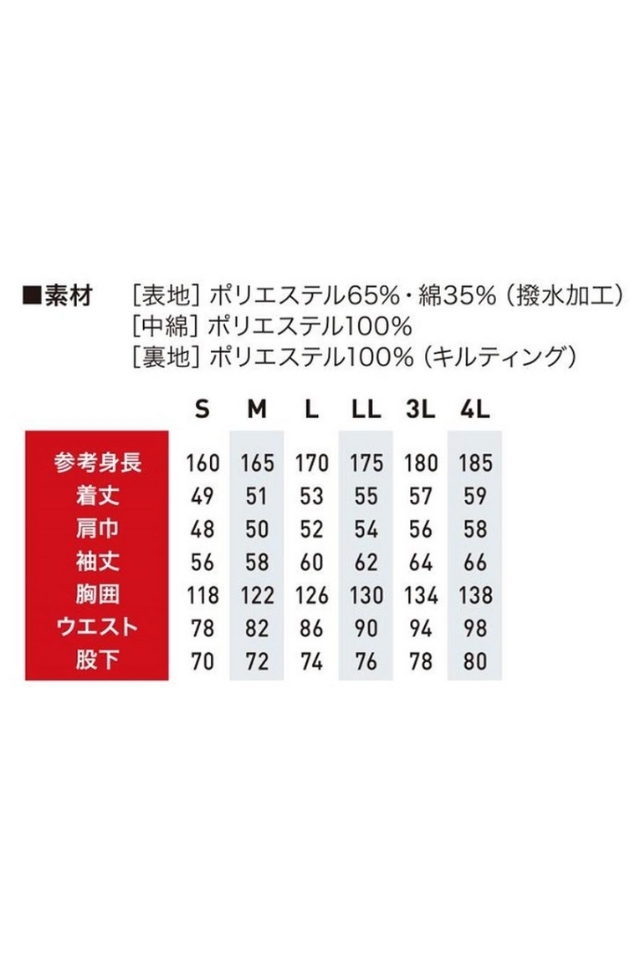 軽量で動きやすい中綿入り作業用防寒つなぎ服PS-2200