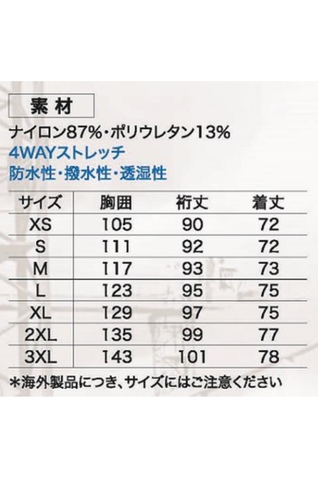 ○通気性があり、防風性と防水性を備え、縫い目はテープで留められています。