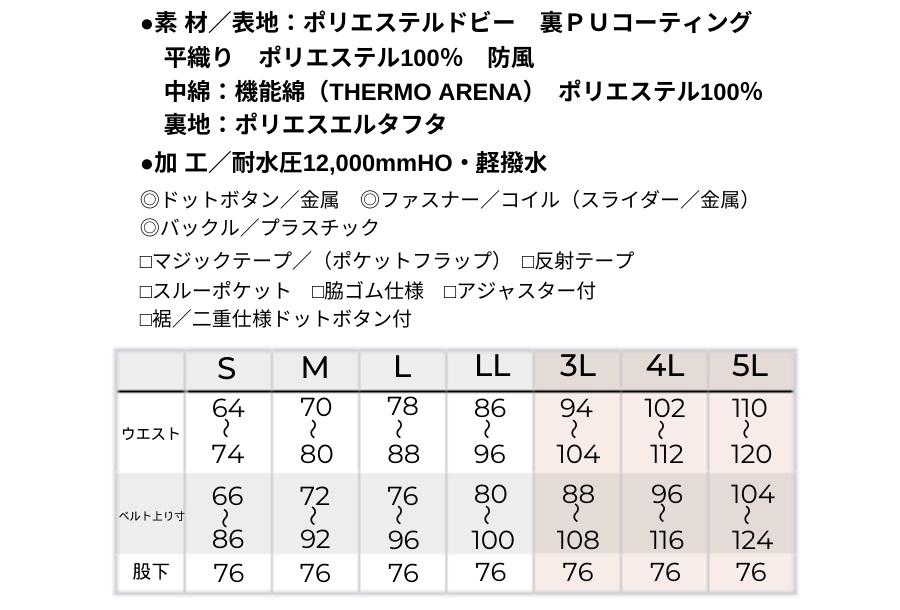 遠赤外線を吸収する防風防寒パンツAZ10306