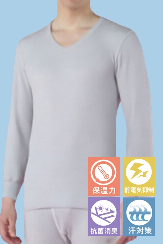 【男性用】超高機能防寒インナーシャツひだまりラビセーヌ長袖Uネック